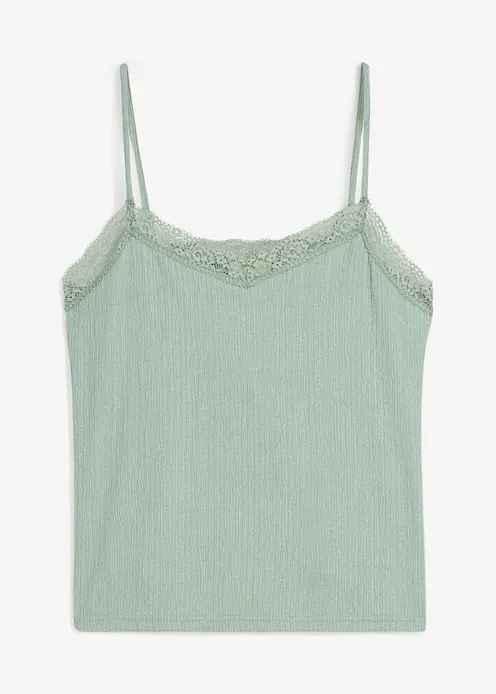 Trendiges Spaghettiträger-Top aus Crêpe mit Spitzeneinsatz