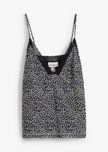 Verspieltes Top aus Mesh mit Spitze und Blumendruck