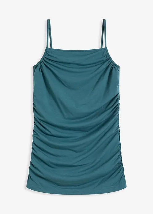 Spaghettiträger-Top mit Raffungen in petrol von vorne - bonprix