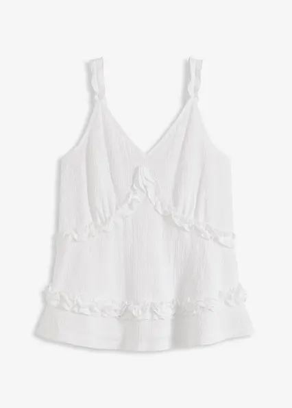 Spaghettiträger-Top mit Rüschen in weiß von vorne - bonprix
