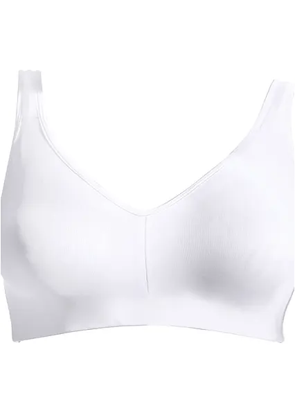 Mit diesem bügellosen Sport-BH sind Sie für alles gerüstet, ob Jogging, Aerobic oder Ausdauertraining. Die Struktur der in diesem Sport-BH verarbeiteten Faser nimmt Feuchtigkeit schnell auf und gibt sie nach außen ab. Sie verleiht Ihnen ein trockenes und angenehmes Körpergefühl. Dieses wird unterstützt durch ein verdecktes, trageangenehmes Unterbrustgummi. Mit BH-Verschluß im Rücken und verstellbaren Trägern.