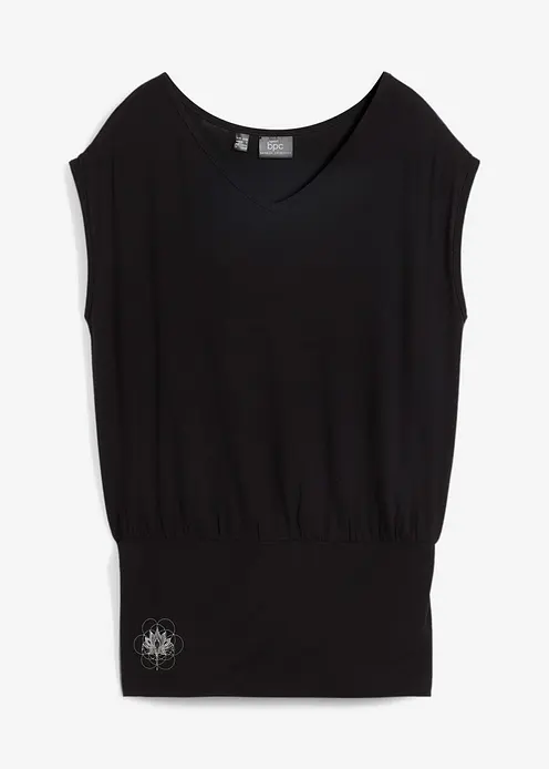 Loungewear-Shirt mit weitem Bund in schwarz von vorne - bonprix