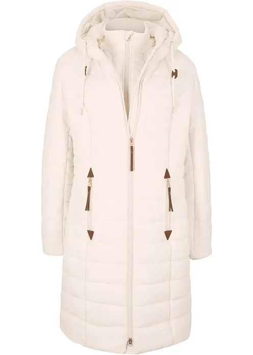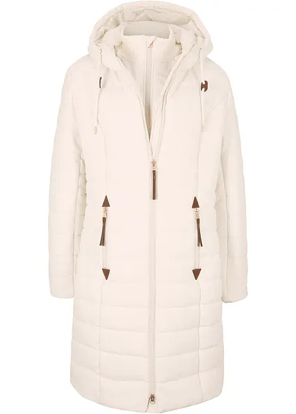 Trendiger Steppmantel mit Lederimitat Zeichen am Ärmel