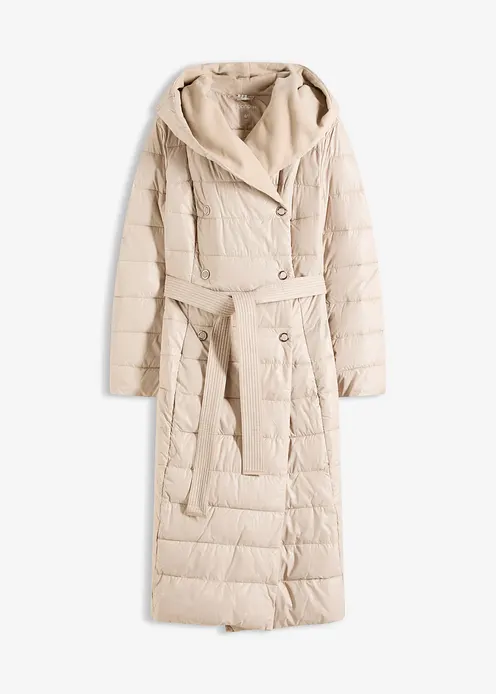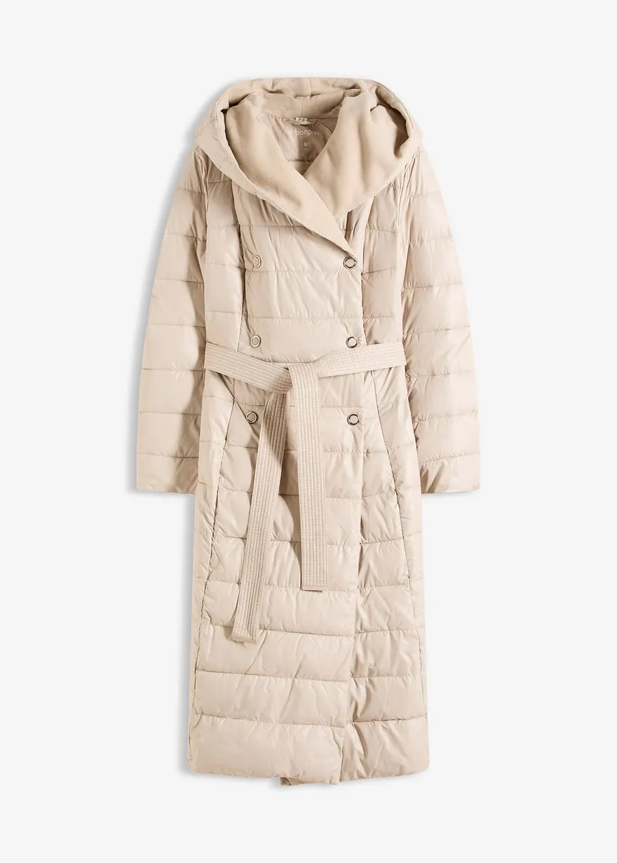 wasserabweisender Steppmantel mit Wollimitat Besatz und Bindegürtel (2-tlg.)