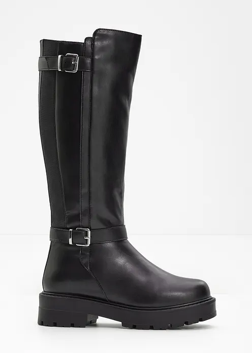 Warmgefutterter Stiefel mit dekorativen Schnallen und Elastik-Einsätzen