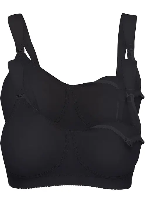 Still BH ohne Bügel mit Bio-Baumwolle (2er Pack) in schwarz von vorne - bonprix