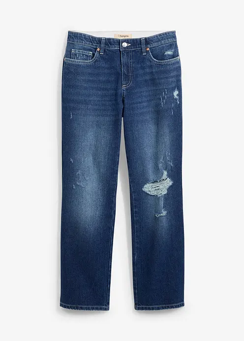 Straight-Jeans Mid Waist Bequembund Low Stretch, cropped in blau von vorne - bonprix