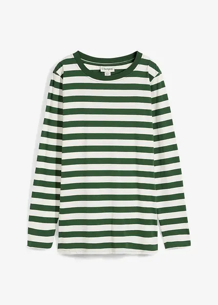 Streifenshirt aus reiner Bio-Baumwolle in grün von vorne - bonprix