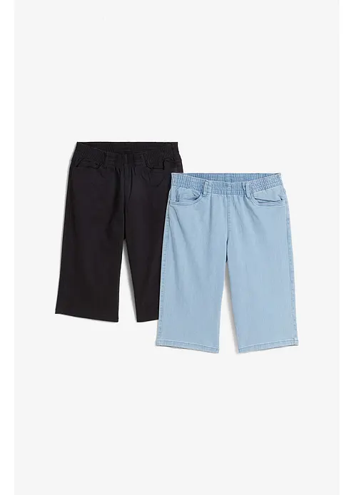 Doppelpack: Stretch-Bermuda in Twill- und Jeansoptik mit elastischem Bund