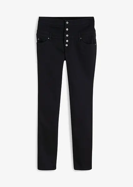 Trendy Stretch-Hose aus RAINBOW Kollektion, vorteilhaft: der hohe Bund verlängert und streckt das Bein optisch, dekorativ, glänzende Knöpfe, Innenbeinlänge in Gr. 42 ca. 81 cm