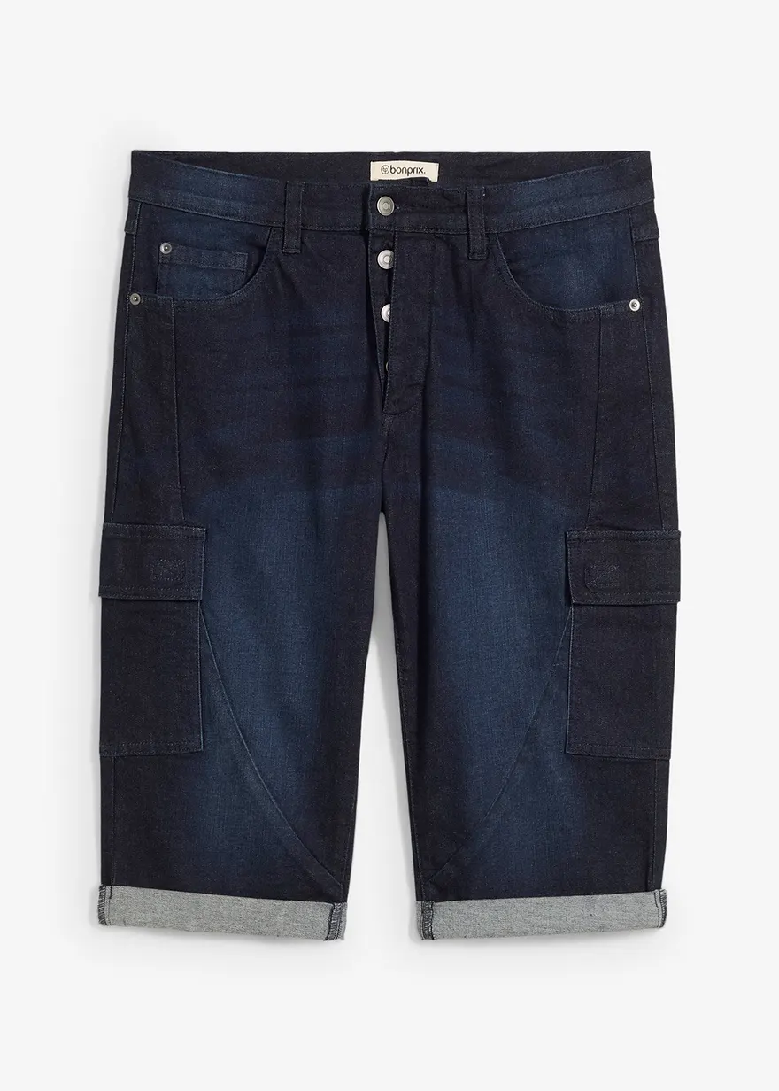 Stretch-Jeans-Cargobermuda, Regular Fit
