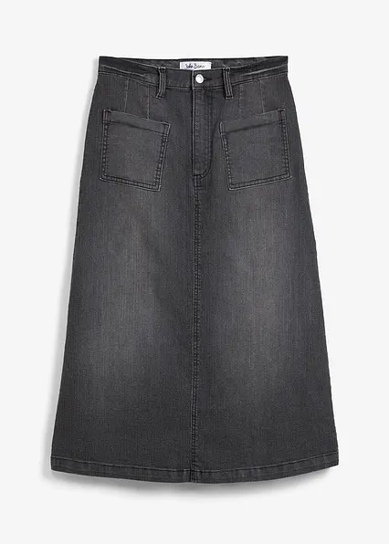 Bequemer Stretch-Jeansrock in Midi-Länge mit Taschen