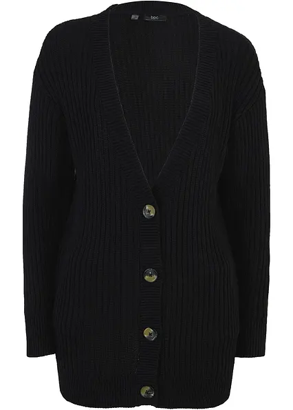 Long-Strickjacke aus Rippstrick