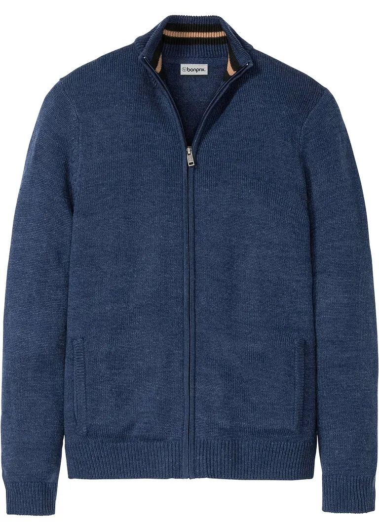 Strickjacke mit Stehkragen und Reißverschluss in der vorderen Mitte.