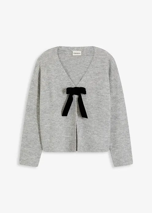 Moderne geschlossene Strickjacke mit dekorativer Schleife