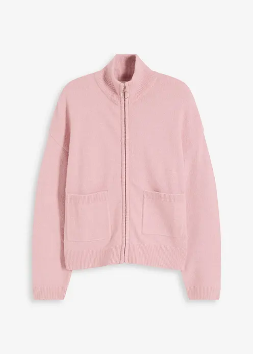 Strickjacke mit Reißverschluss in rosa von vorne - bonprix