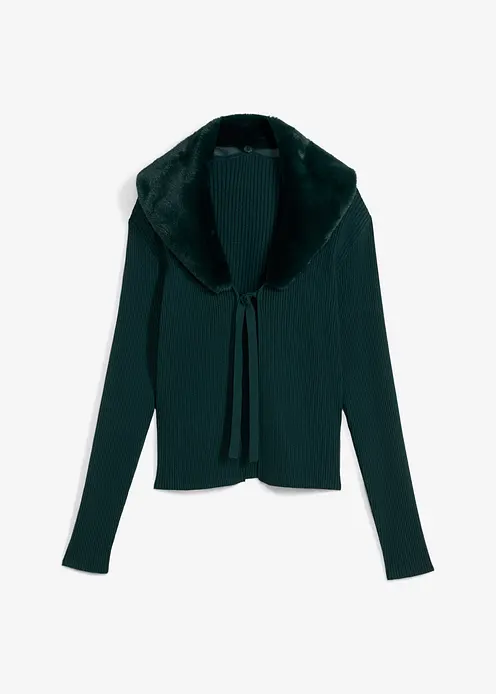 Strickjacke mit Webpelz in grün von vorne - bonprix