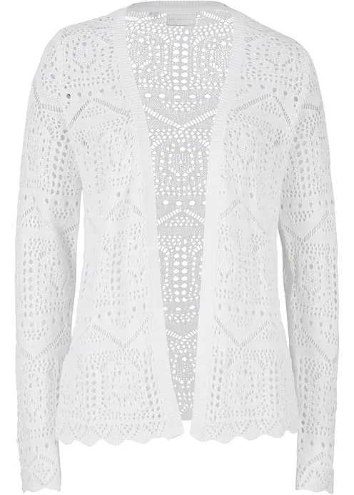 Ajour-Strickjacke in weiß von vorne (im Anschnitt) - bonprix
