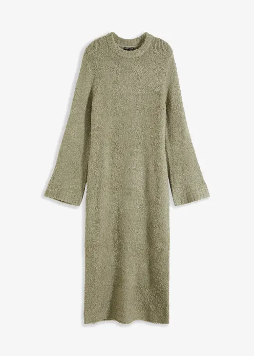 edles Bouclé Strickkleid mit Rundhals Ausschnitt