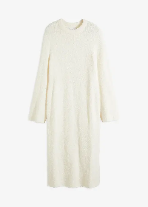 edles Bouclé Strickkleid mit Rundhals Ausschnitt