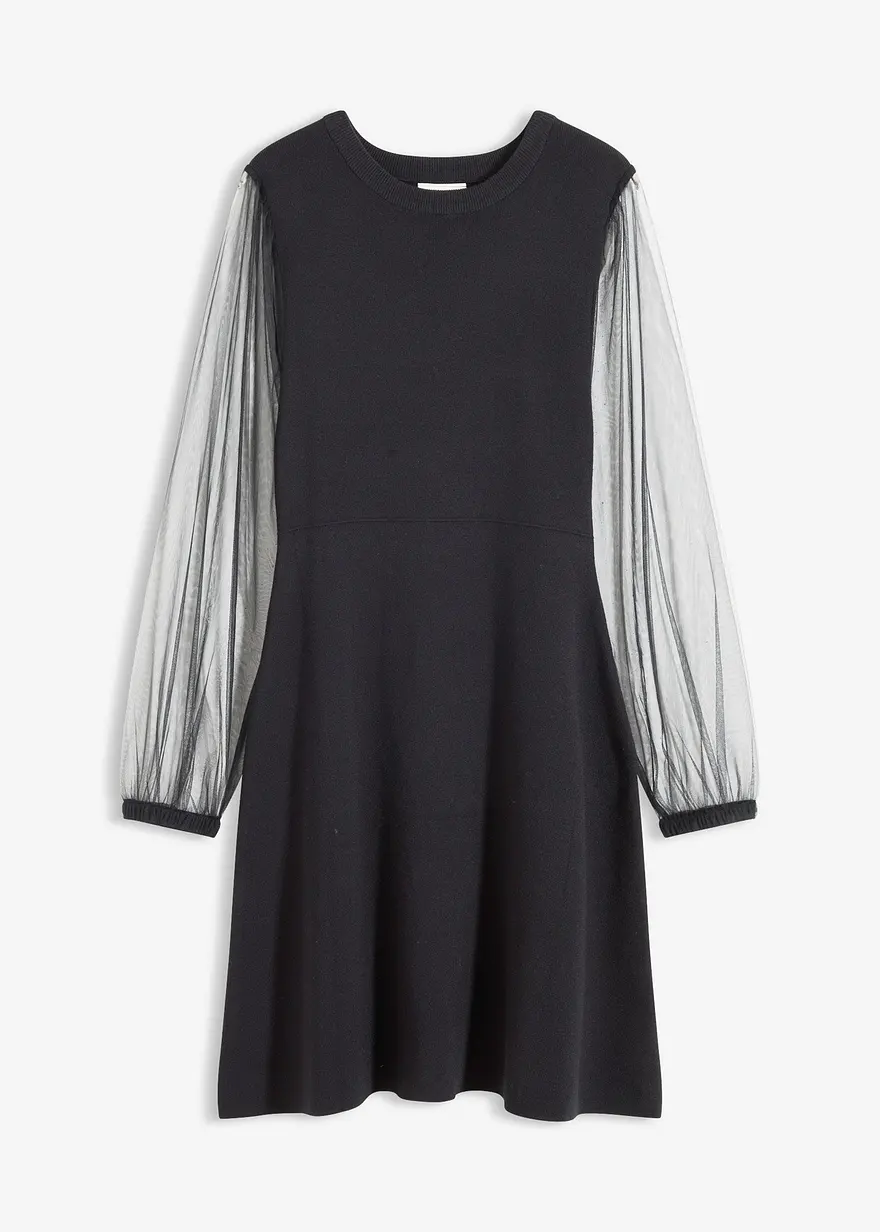 Modernes Strickkleid mit transparenten Ärmeln