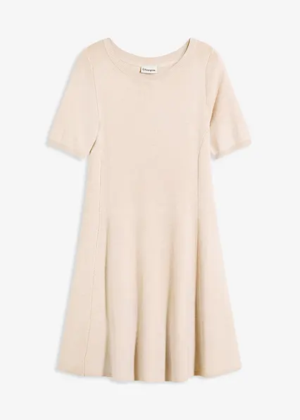 Strickkleid aus softem Viskose-Mix in beige von vorne - bonprix
