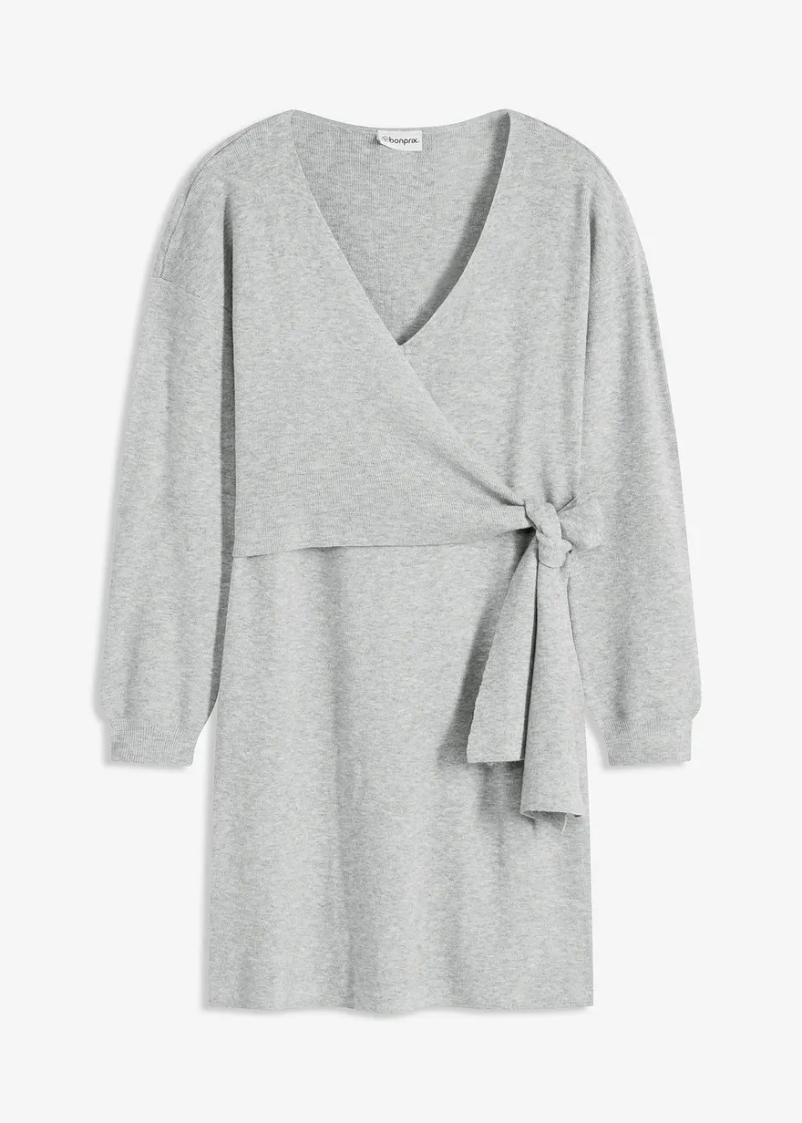 Kurzes Strickkleid in Wickeloptik mit V-Ausschnitt