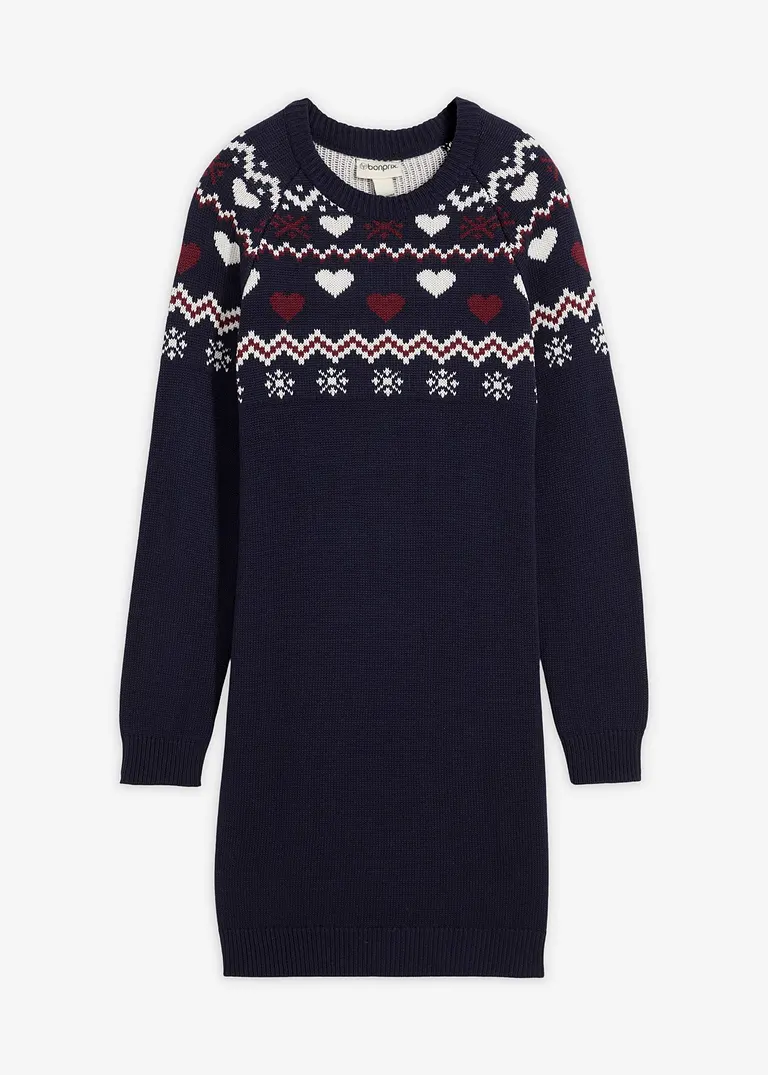 Schönes Mädchen Strickkleid mit Norwegermuster