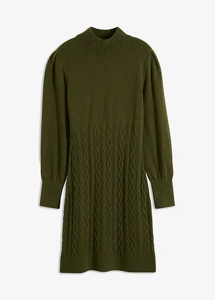 feminines Strickkleid mit Zopfmuster