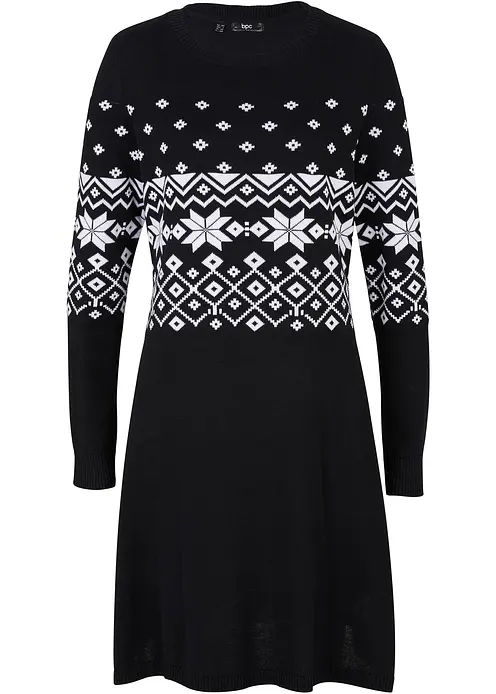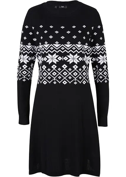 Figurschmeichelndes Stickkleid mit Norwegermuster und ausgestelltem Rock