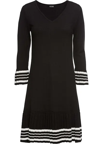 Moderes Kleid mit plissiertem Rockteil und Streifendesign