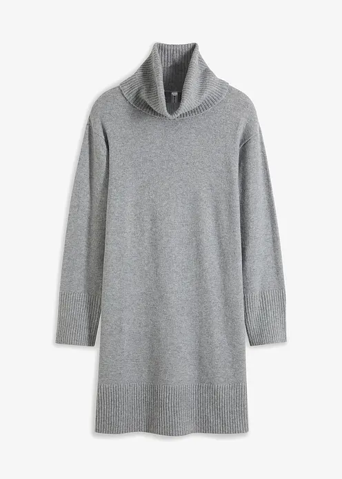 Strickkleid mit Rollkragen in grau von vorne - bonprix