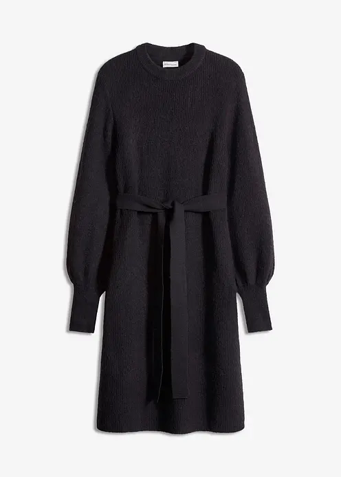 Modernes Strickkleid mit Ballonärmeln und Bindeband