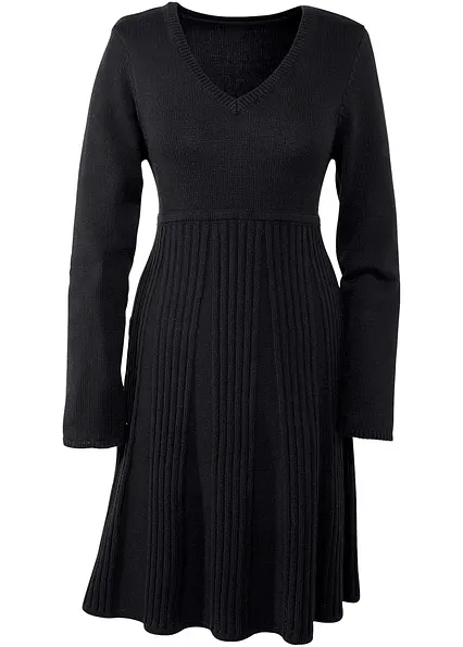Figurbetont geschnittenes Strickkleid mit attraktivem Rippen-Mix