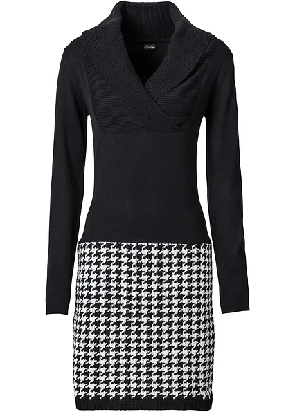 Apartes Strickkleid mit gemustertem Rockteil und ansprechendem Kragen