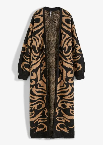 Modischer Oversized Strickmantel extra lang aus Strick mit Jacquard Design