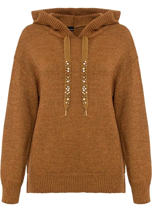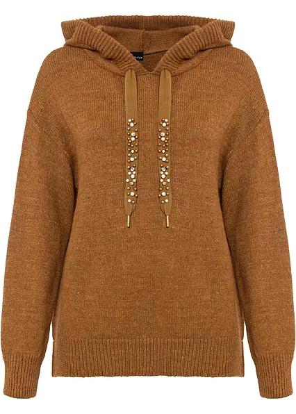 Die stylishen kleinen Details machen diesen lockeren Pullover mit Kapuze zu einem besonderen Hingucker. Das Modell der Marke BODYFLIRT erfreut mit einem legeren Schnitt mit langen Ärmeln, der in der Länge die Hüfte umspielt. Auffallend sind die mit Schmucksteinen verzierten Bänder der Kapuze, die dem Look einen Hauch Glamour verleihen.