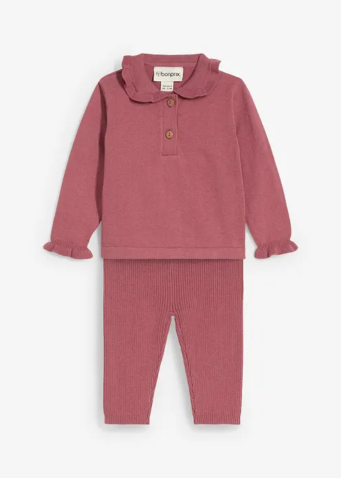 Kuscheliges Strickpullover- und Leggings-Set mit Volants für Babys aus Baumwoll-Mix