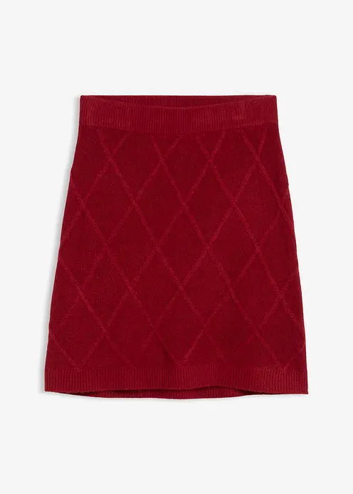 Lässig geschnittener Strickrock aus Zopfstrick. Hoch geschnittenes Modell mit Rippstrick am Bund und am Saum.