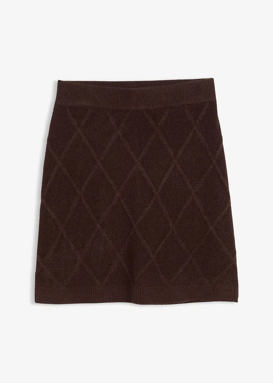 Lässig geschnittener Strickrock aus Zopfstrick. Hoch geschnittenes Modell mit Rippstrick am Bund und am Saum.
