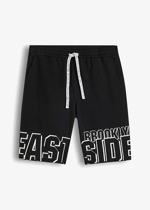 Moderne Sweat-Bermuda mit Druck und offenen Kanten am Saum.