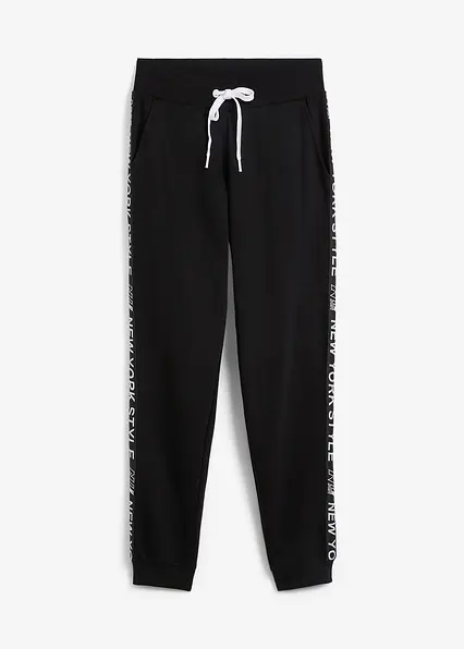 Sweathose mit Bündchen und Statement-Druck in schwarz von vorne - bonprix