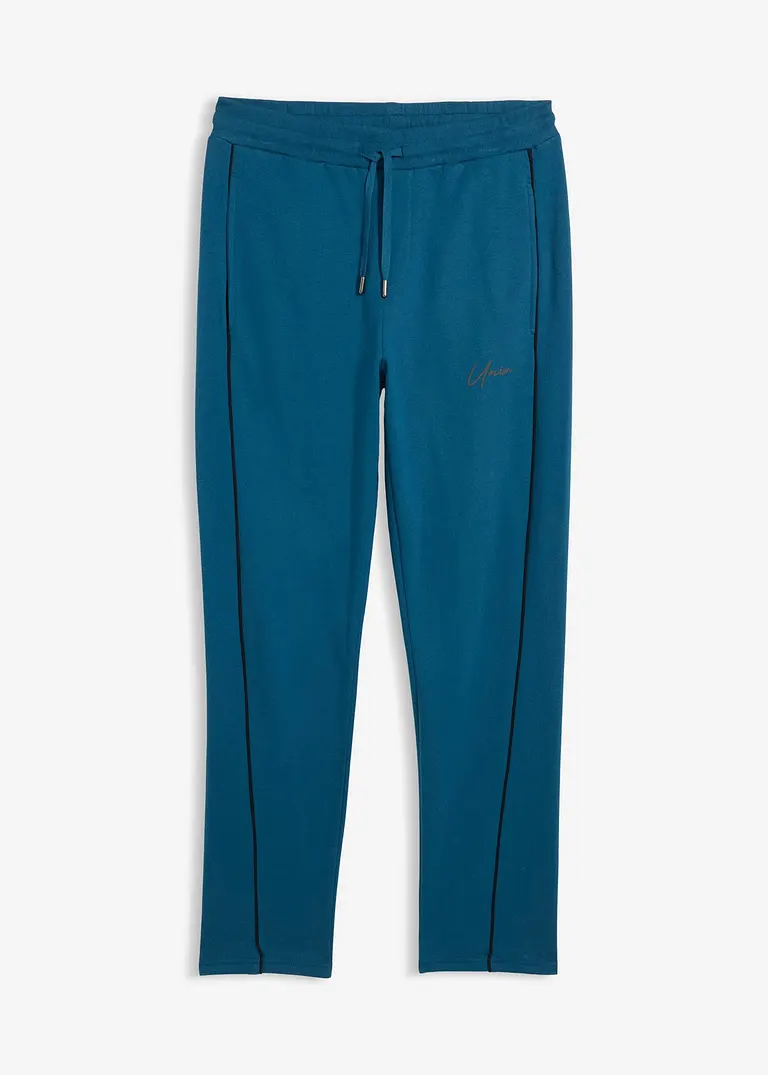Sweathose mit Kontrastdetails aus reiner Baumwolle in petrol von vorne - bonprix