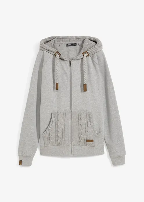 Sweatjacke mit schönen Strick- und Lederimitat-Details