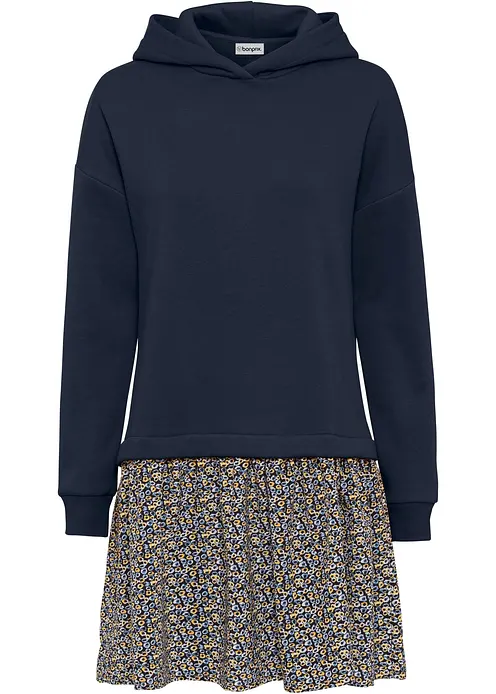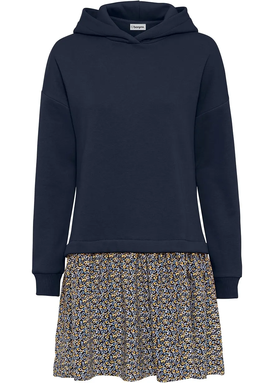 Lässiges Sweatkleid in 2-1 Optik mit Kapuze