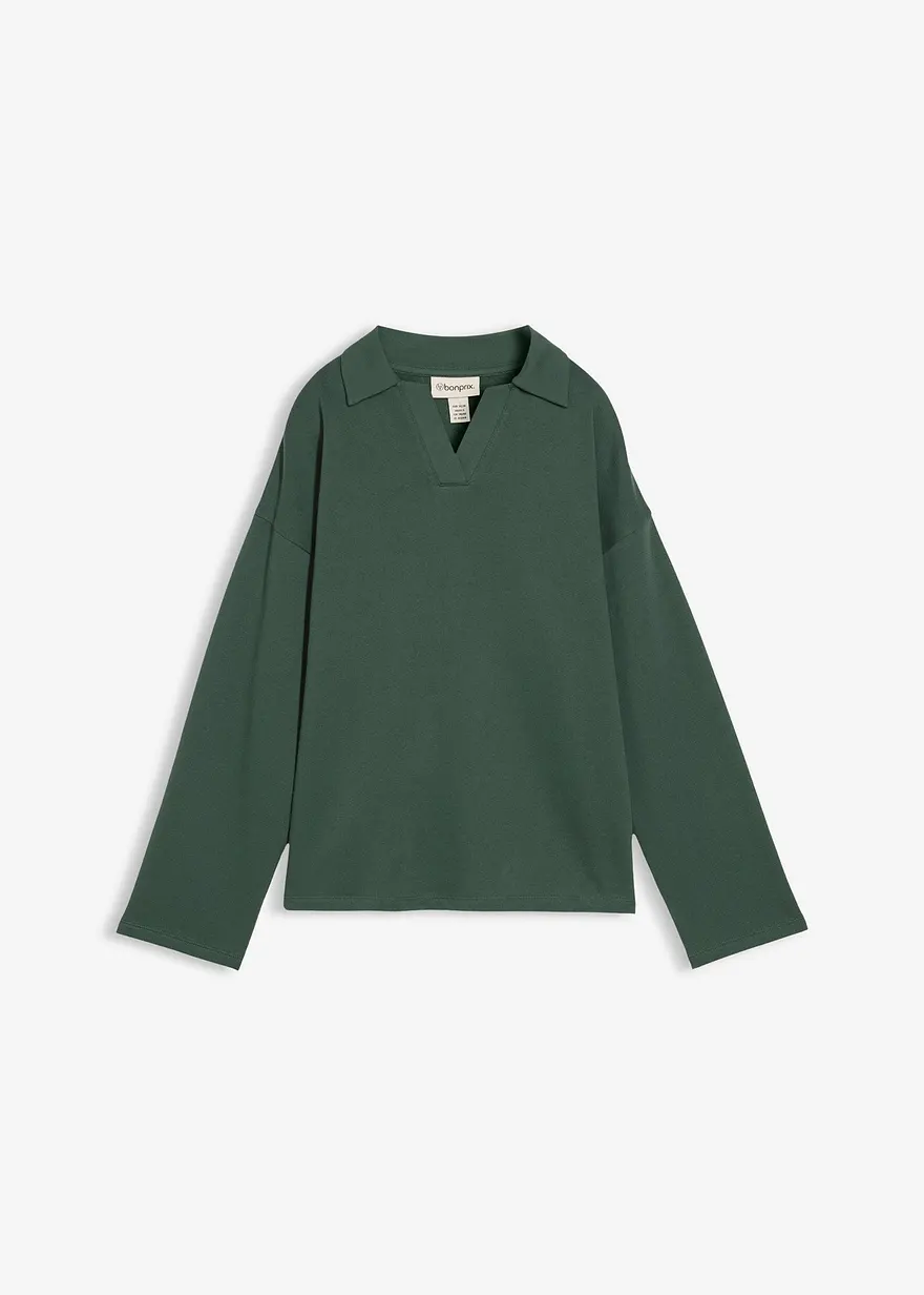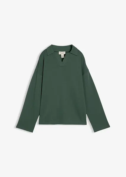 Sweatshirt mit gestricktem Polokragen und V-Ausschnitt mit langen Ärmeln aus Bio-Baumwolle