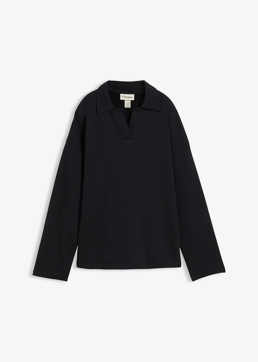 Sweatshirt mit gestricktem Polokragen und V-Ausschnitt mit langen Ärmeln aus Bio-Baumwolle