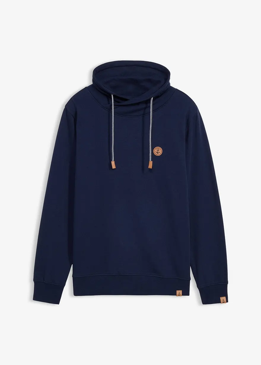 Moderner Sweatpullover mit angesagtem Schalkragen und kontrastfarbener Kordel