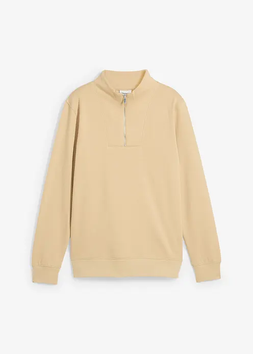 modernes Sweatshirt mit Troyerkragen und Reißverschlussöffnung, innen weich angeraut