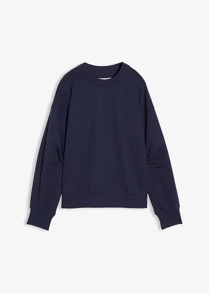 Langarm-Sweatshirt mit Rundhalsausschnitt weitem Ripp-Kragen sowie Abnähern am Ärmel aus Bio-Baumwolle